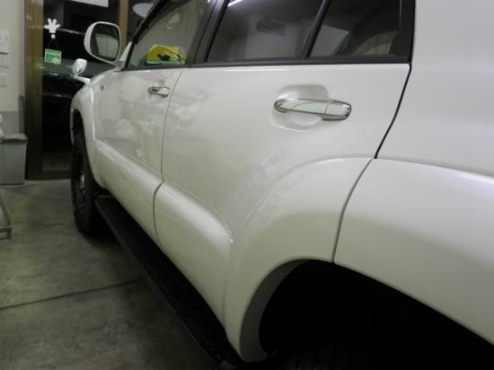 フロントバンパー、左フロントフェンダーパネル、左リアドアー部分を塗り直しましたのでその部分をまたGT-Cグラステックコートにて再施工いたしました。