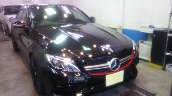 本日、今回のボディガラスコーティング施工ご依頼は、東京都より新車納車後約2年経過いたしました、黒のメタリックカラーのオブシディアンブラックカラーのAMGC63Sにて施工ご依頼お持ち込みご入庫いただきました。