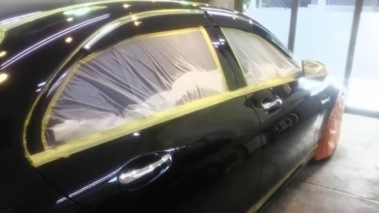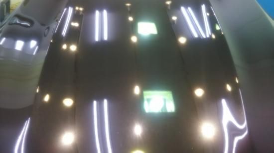 最近この車をお買いになりましたようでして、黒の濃色車と言うこともありましてボディ塗装面には洗車時の拭き傷等が目立っておりまして、その他水垢染み汚れ等も見受けられますような状態でしたので、そのようなボディ塗装面の痛み等を取り除きます下地磨き処理をしっかりと施させていただきます作業をいたしまして、状態をできる限りセットリフレッシュさせていただきますように整えて参ります。